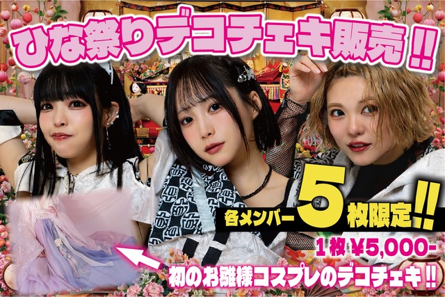 【5枚限定】ひなまつりデコチェキ!!!! 価格:¥5000- ・各メンバー5枚限定!!! ・落書きチェキではなく、カラフルにデコレーションしたお守り仕様のチェキとなります!!